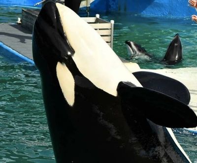 The Miami SeaQuarium is home to the smallest orca tank in the world, which contains one 20 foot orca and between four and five Pacific White Sided dolphins.